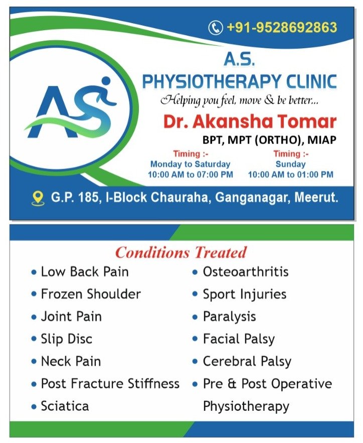 A S PHYSIOTHERAPY CLINIC, DR AKANSHA TOMAR